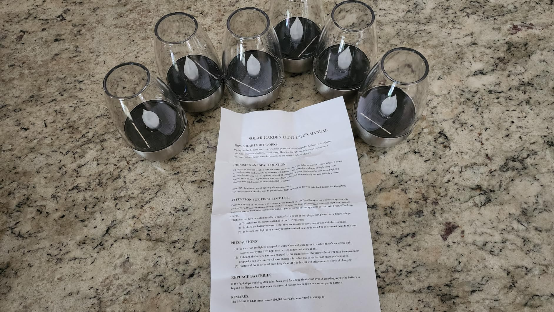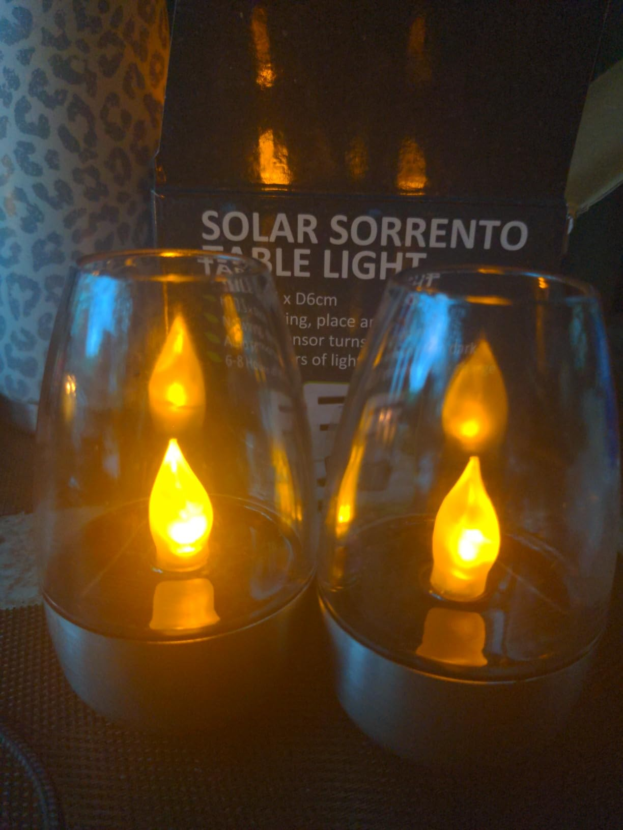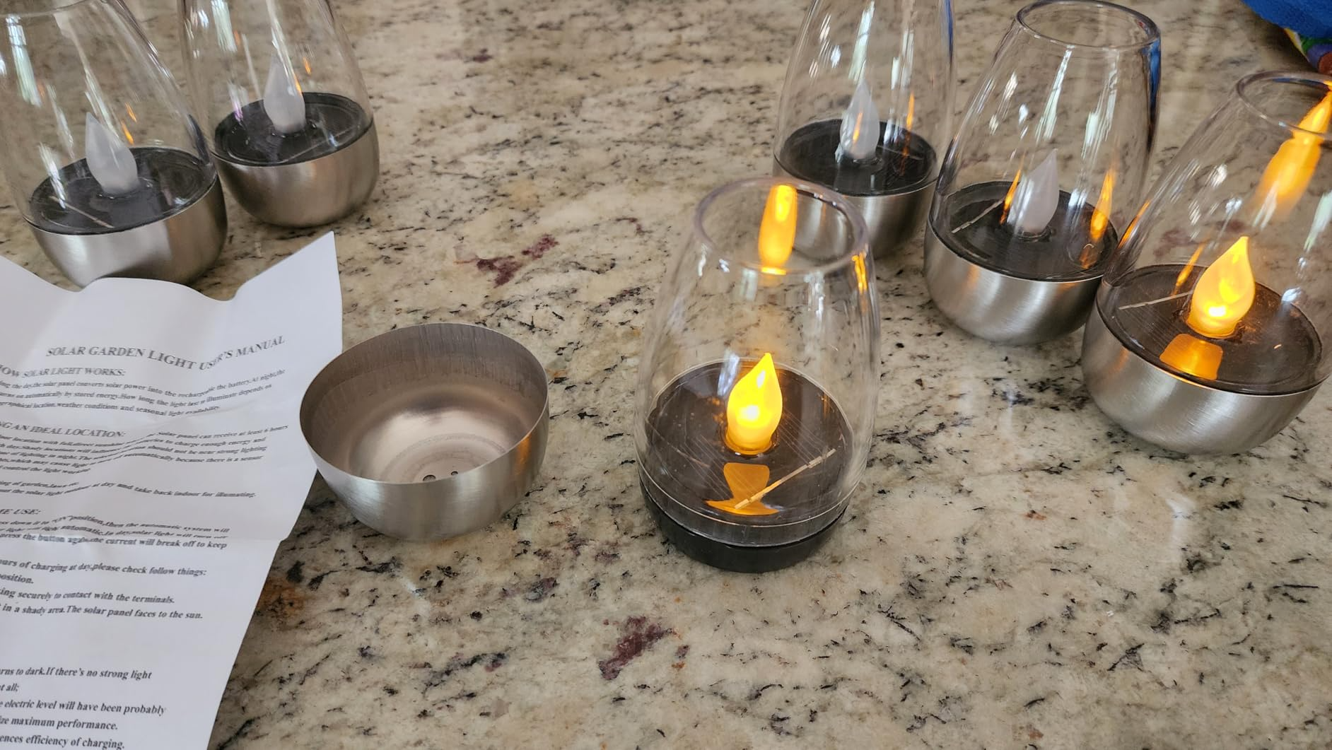 “Beautiful! I’m very happy with these solar lights. I’m using them in a thrifted candelabra outdoors. The shape is elegant and the “flames” make a beautiful glow. They are made to look and feel like real glass. Prior to finding these, I was stuck using basic solar lights that looked cheap (because they were cheap).”
